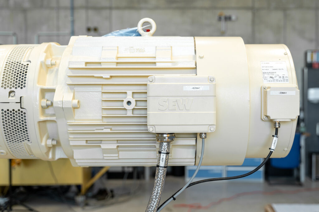 Die bei ECT-Kema verbauten Getriebe werden von Motoren der Baureihe DRN.. angetrieben. Diese sind über einen Ritzelzapfen direkt mit dem Planetengetriebe verbunden. Der Motordirektanbau erspart den sonst üblichen Adapterflansch, wodurch die Antriebseinheit auch in der Länge kompakt ausgeführt ist. Die Getriebe überzeugen zudem durch ihre hohe thermische Grenzleistung. Ein in die Motorschnittstelle integrierter Lüfter saugt die Umgebungsluft radial an, beschleunigt diese und erzeugt einen kühlenden Luftstrom. Dadurch können die Getriebe auch bei hoher Auslastung zuverlässig im vorgesehenen Temperaturbereich betrieben werden – ganz ohne aufwändige externe Kühlsysteme.
