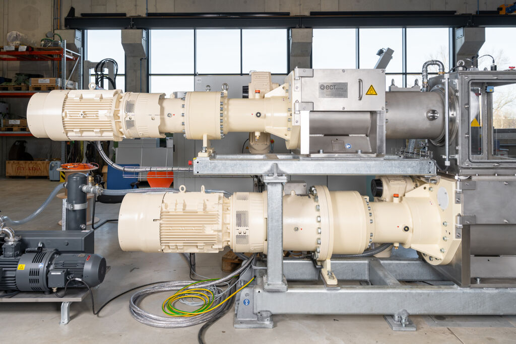 Eine Optimierung des Prozesses erzielt die Firma auch durch die Planetengetriebe der Baureihe P2.e von SEW-Eurodrive. „Mit ihrer Hilfe bekommen wir eine viel bessere Füllgradregelung in den Prozessverlauf. Durch die platzsparenden P2.e-Getriebe können wir neben dem Schneckenantrieb nun auch separate Antriebe für die Einräumwalzen platzieren“, erklärt Dipl.-Ing. Torsten Seidel, Geschäftsführer von ECT-Kema. „Die technischen Merkmale der P2.e-Getriebe tragen maßgeblich zur Leistungsfähigkeit und Zuverlässigkeit der Extruder bei.“
