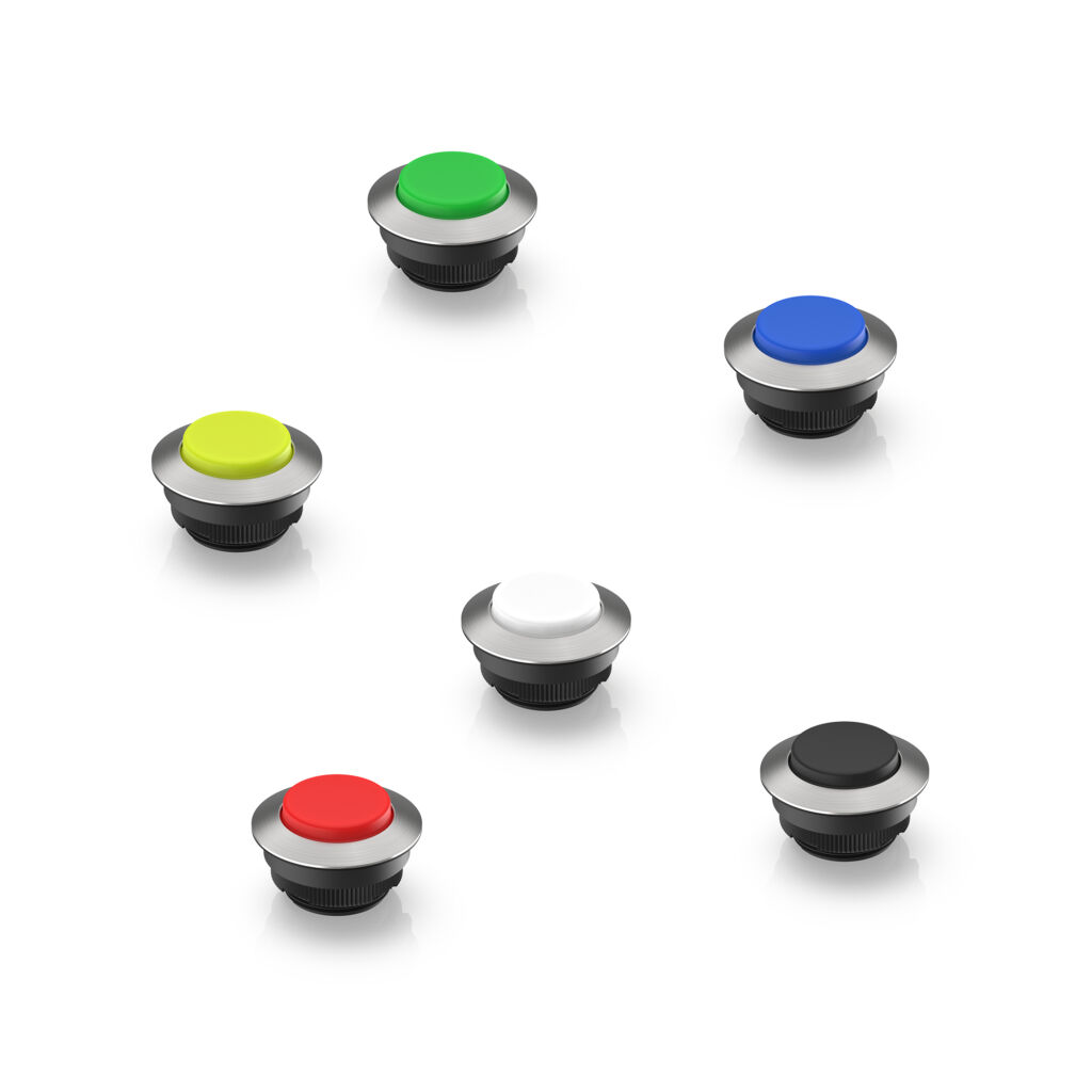 Rafi hat seine Modellreihe Rafix 30 FS+ im eleganten, flach gestalteten Design um Leuchtdrucktaster mit vorstehender Blende in sechs verschiedenen Blendenfarben erweitert. Die Befehlsgeräte mit Edelstahl-Frontring, rundem Bund und vorstehender transluzenter Blende sind für Einbauöffnungen von 30,3mm dimensioniert. Mit einem Bunddurchmesser von 34,5mm eignen sie sich für ein Rastermaß ab 35x35mm. Die Tasterserie verfügt frontseitig über Schutzart IP65, kann in Temperaturbereichen von -25 bis +70°C eingesetzt werden und bietet auch bei Handschuhbedienung ein deutliches taktiles Feedback. Die Varianten stehen in Ausführungen mit Goldkontakten für maximal 35V und 100mA oder mit Silberkontakten für bis zu 250V und 4A zur Verfügung.