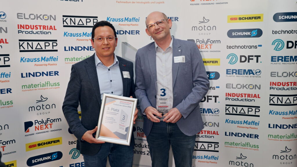Bei der offiziellen Preisverleihung der Industrial Production in München wurde das Energiemanagementsystem auf den dritten Platz in der Kategorie ‚Energietechnik und Elektromechanik‘ gewählt. Die Jury für die Auszeichnung bilden die Leserinnen und Leser. In einem offenen Online-Voting können sie für Ihre Favoriten stimmen.