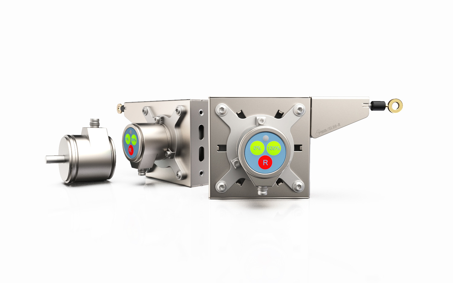Für die neue Baureihe SL00-R wurden die Serien SL00 und SL3000 miteinander kombiniert. Das Gehäuse in den Abmessungen 80x80mm besteht aus V2A-Edelstahl und bietet an allen Seiten Befestigungsmöglichkeiten zur Montage. Ein Drehgeber kann auf beiden Seiten des Gehäuses angebracht werden, der Seilabzug wird je nach Anwendung links oder rechts ausgerichtet. Falls erforderlich, lässt sich das Seil über eine angebaute Umlenkrolle in jede gewünschte Abzugsrichtung führen.