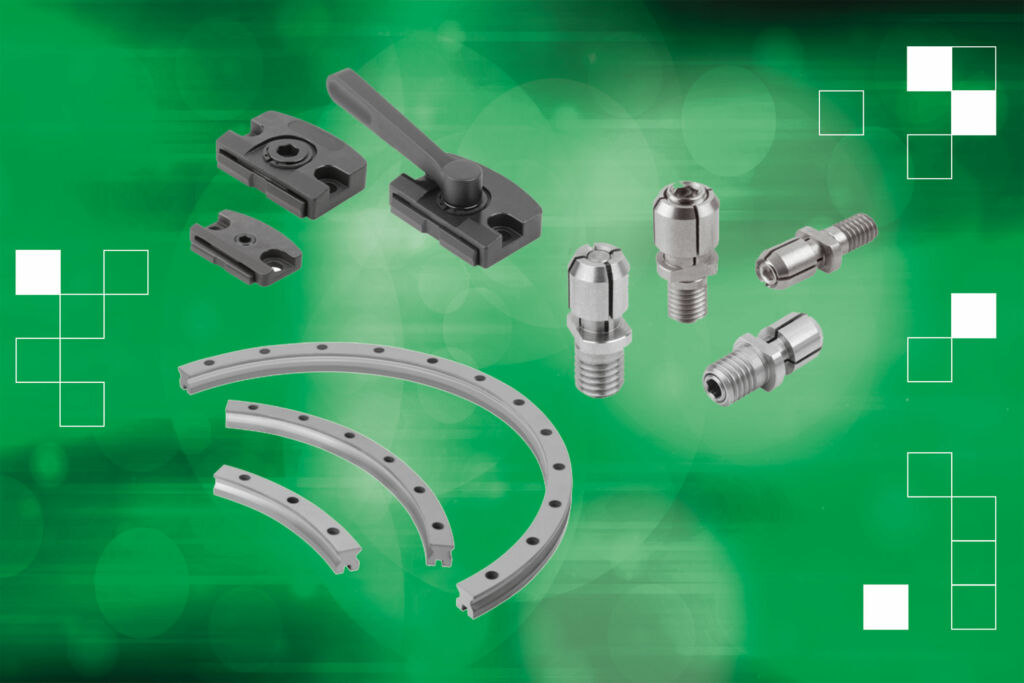 Als Highlights aus der Lineartechnik sind gerade und gebogene Linearführungsschienen und passende Rollenführungswagen für Kurvenfahrten von Führungsschlitten zu sehen. Norelem bietet für rotierende Anwendungen eine Reihe von Führungsschienen mit Kurven bis zu 180° an. Das neue Linearführungssystem gestattet einfache und freie Streckenkonfigurationen sowohl mit geraden als auch gebogenen Schienen. Als digitales Pendant zum ‚Big Green Book‘ präsentiert Norelem seinen Onlineshop mit praktischen neuen Funktionen und steht mit seinem Messeteam für alle Fragen rund um das über 100.000 Produkte umfassende Sortiment zur Verfügung.
